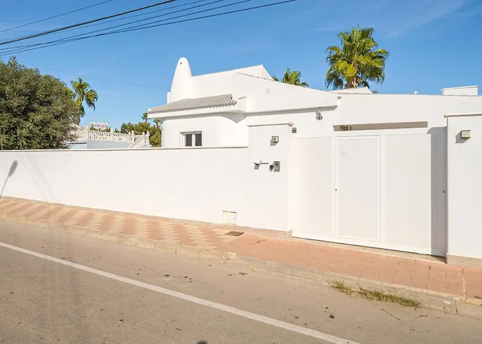 Den här villan med 3 badrum ligger cirka 10 minuters bilresa från Jardín de las Naciones och inom 8 minuters promenad från Naturreservatet Lagunas de La Mata och Torrevieja.